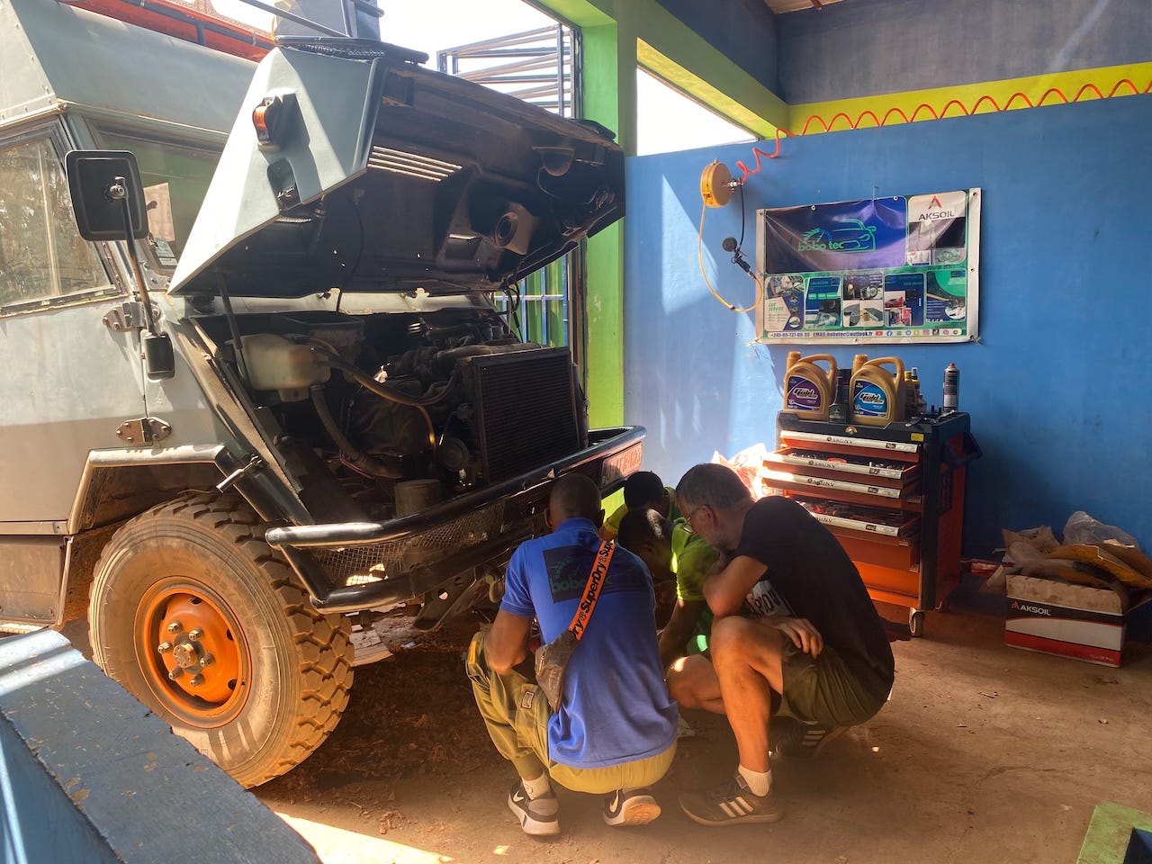 In Bissau we finally took the chance to get our temporarily welded stabiliser bar replaced with a new part. A steaming hot wild goose-chase ended in a very confusing conversation with a mechanic who then turned us away. I have a hate-hate relationship with the French language (my fault) but weirdly you miss it when it’s been replaced by Portuguese Creole and you’re trying to talk about ball joints. We took a Google punt on another place and when we pulled in and realised the mechanic was from (the Republic of) Guinea and therefore spoke le French, we could have kissed him.