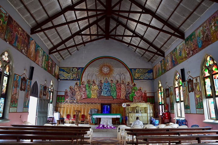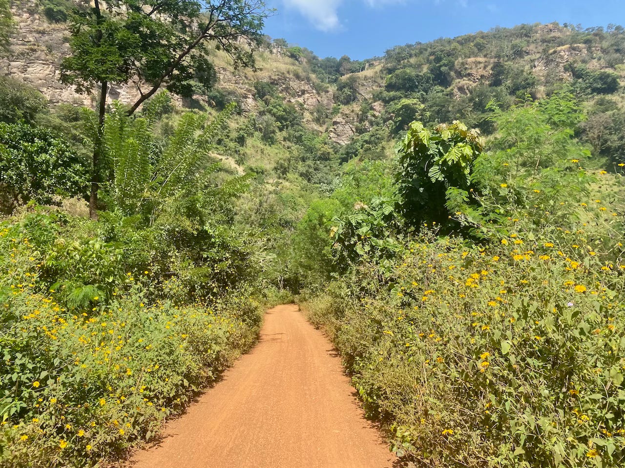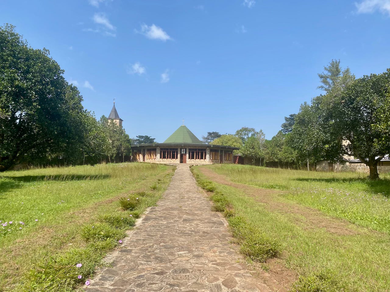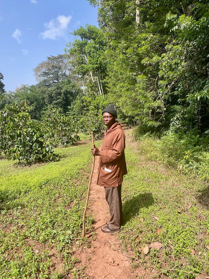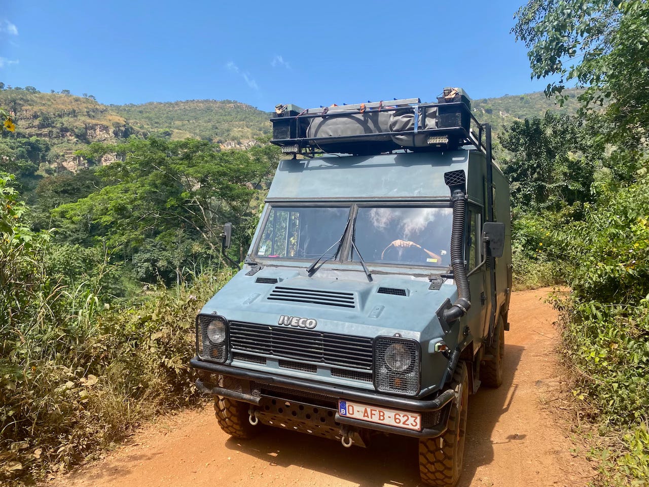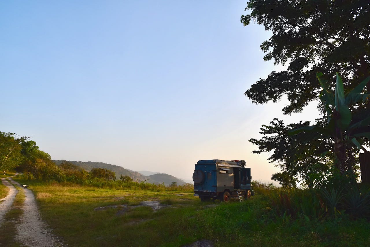 It started well from leaving the farm, with a lovely drive north towards the Danyi Plateau. We spent the first night camping in the grounds of a large monastery, Abbaye de l’Ascension, which grows and processes coffee as well as other things like citronella and avocado oil.