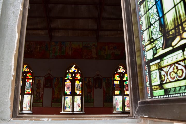 In Togoville we took a tour from the tourist office, which included a church built in 1910 by the Germans and later changed to a Catholic cathedral by the ruling French. Togoland, as it was previously called, was colonised by the Germans until WW1 when the French and British conquered it, and split it in two when joint rule collapsed. In 1957 British Togoland voted to join with the Gold Coast to form an independent Ghana, and the French part later became the independent Republic of Togo.